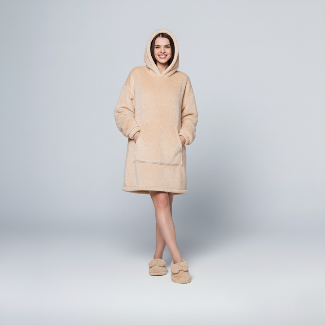 Diseñado con tela corderito bifaz suave, nuestro Buzo Manta te envuelve en una nube de calidez. Ideal para relajarte en el sillón, trabajar desde casa o disfrutar de una maratón de series sin pasar frío.