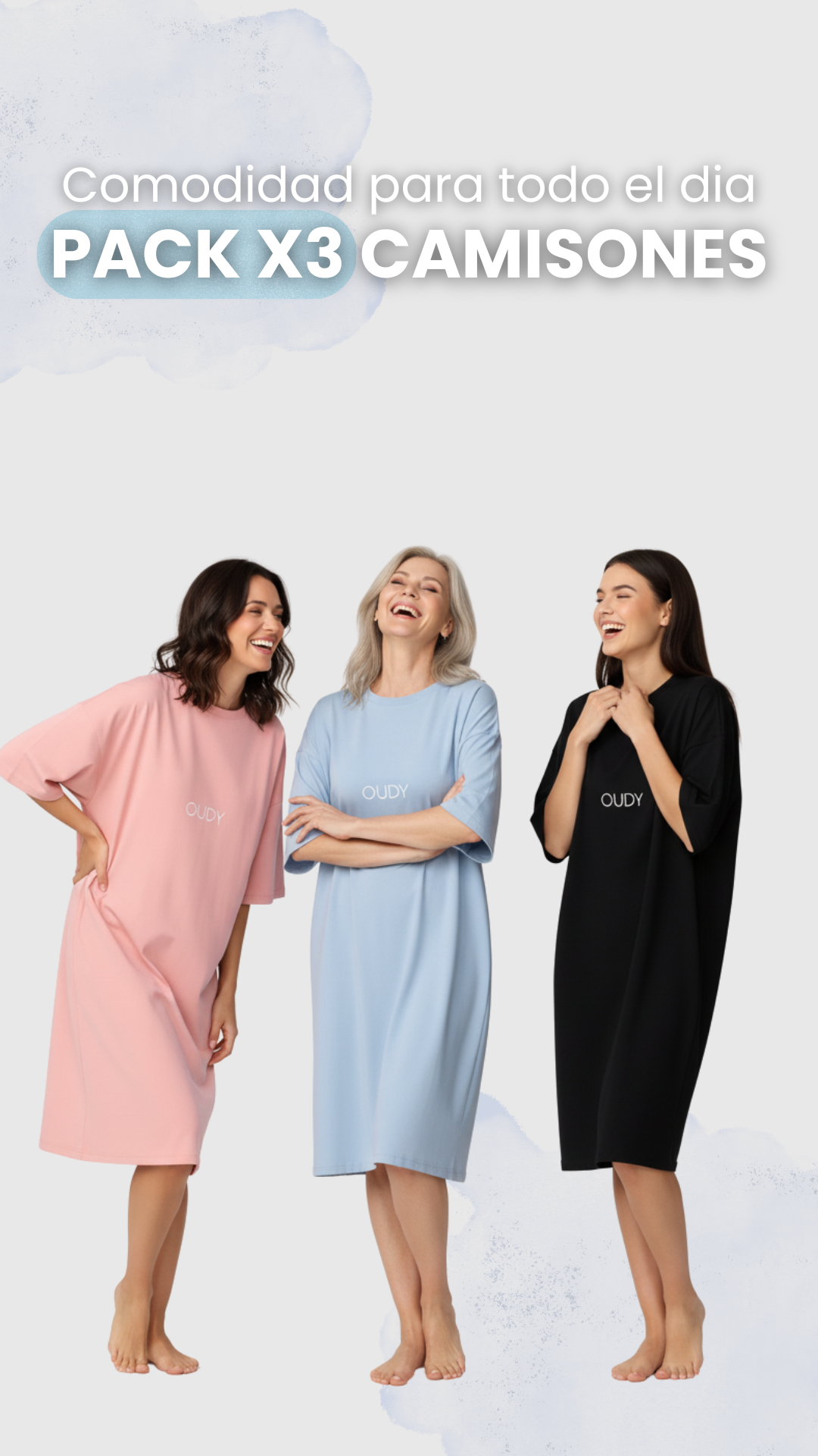 DATO: Esta promo incluye el pack x3 camisones (1 rosa - 1 negro - 1 celeste)