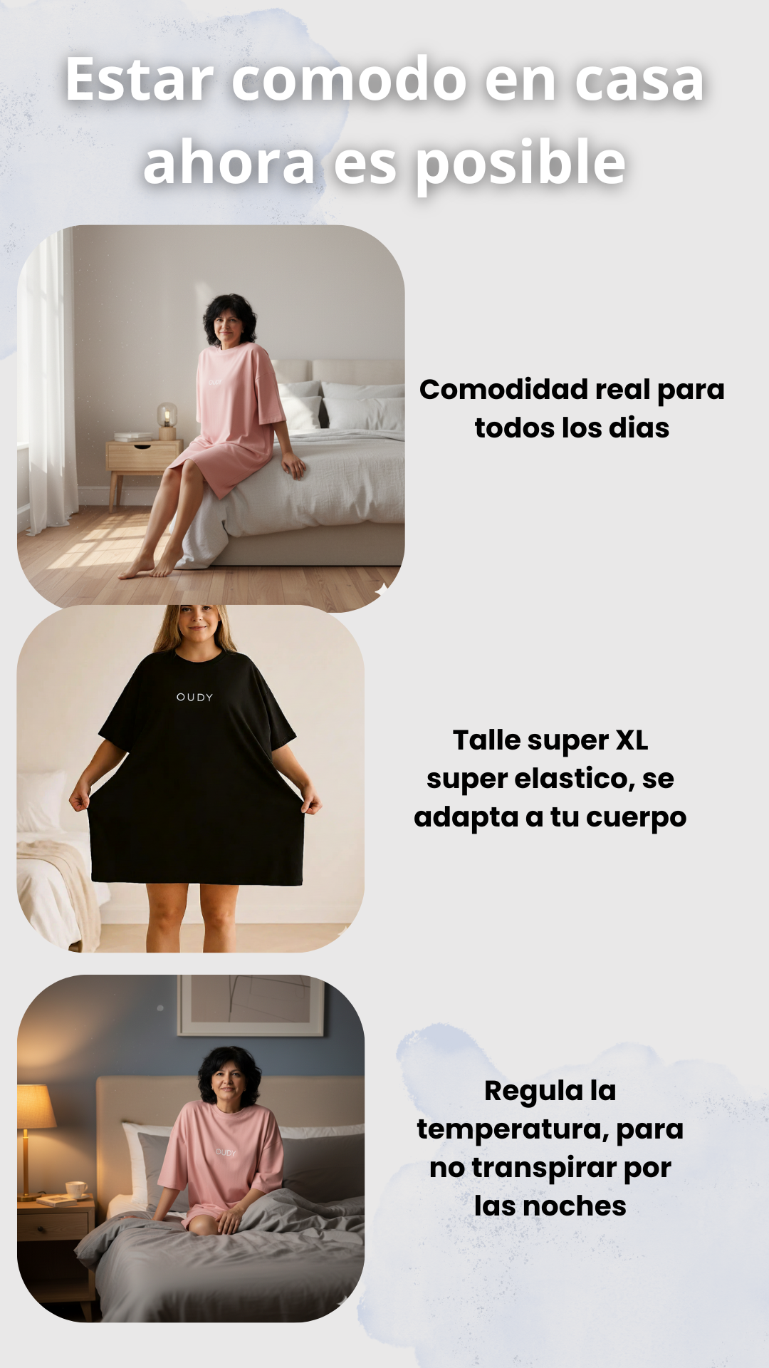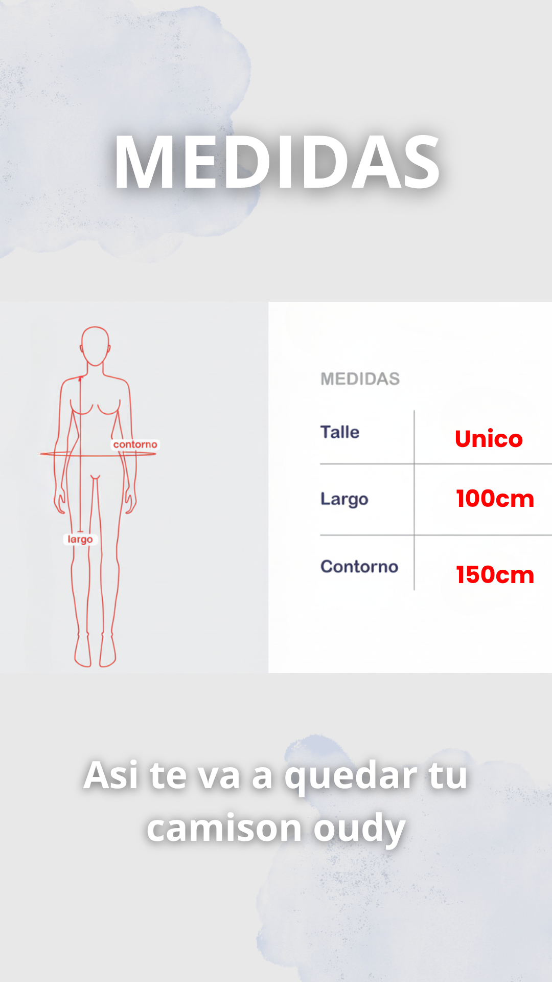 Nuestros camisones están diseñados en un talle mega XL para que sean aptos para todo tipo de cuerpos, ya sea que midas 1.50m o 2m.