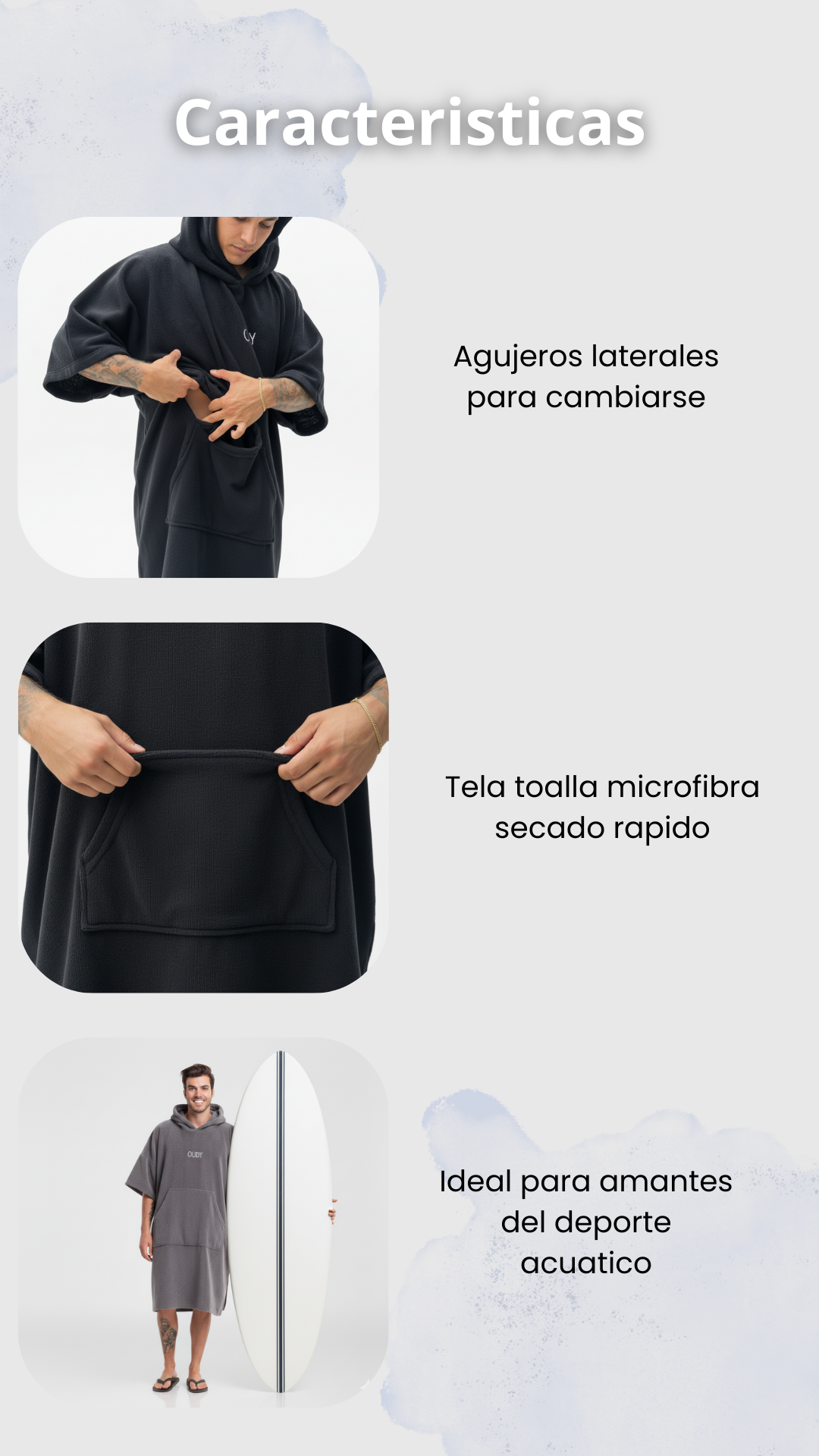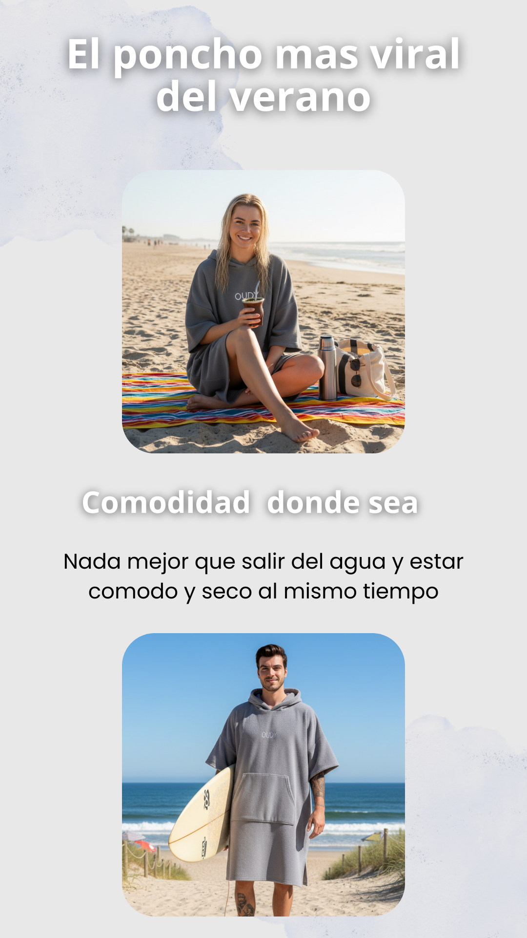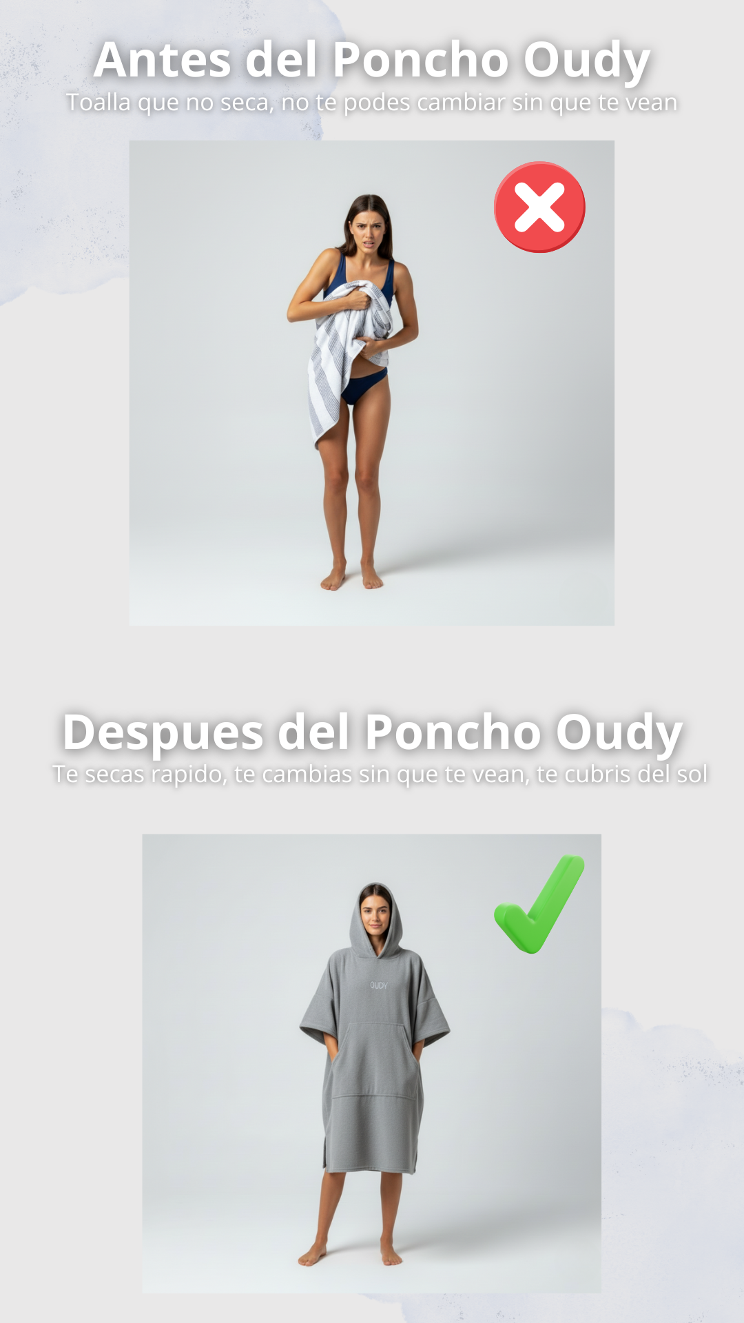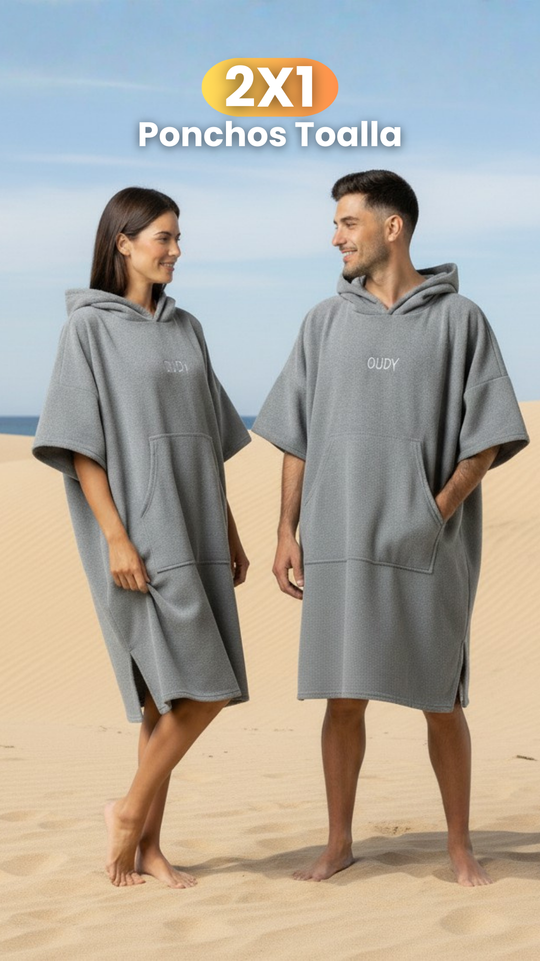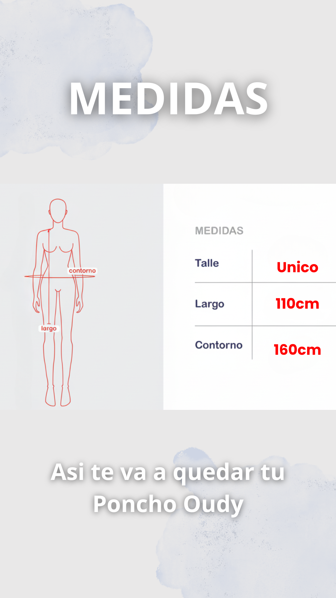 Nuestros Ponchos oudy están diseñados en un talle mega XL para que sean aptos para todo tipo de cuerpos, ya sea que midas 1.50m o 2m.